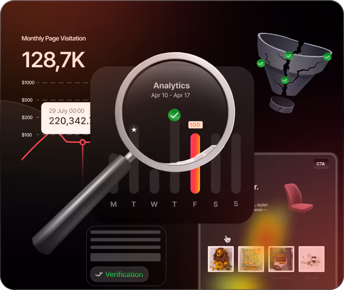 We audit your analytics, events, and key funnels to make sure the numbers you see are the numbers you can trust and to find missing, broken, or misattributed data before it skews your test results.