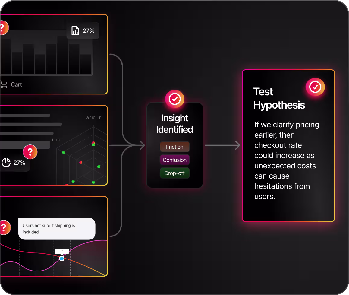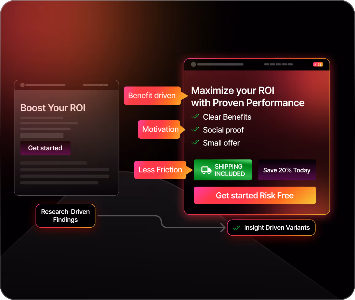 We design bold, insight‑driven variants (not tiny tweaks) that challenge your current experience. Our design and copy focus on clarity, motivation, and friction so every test has a real chance to lift performance.