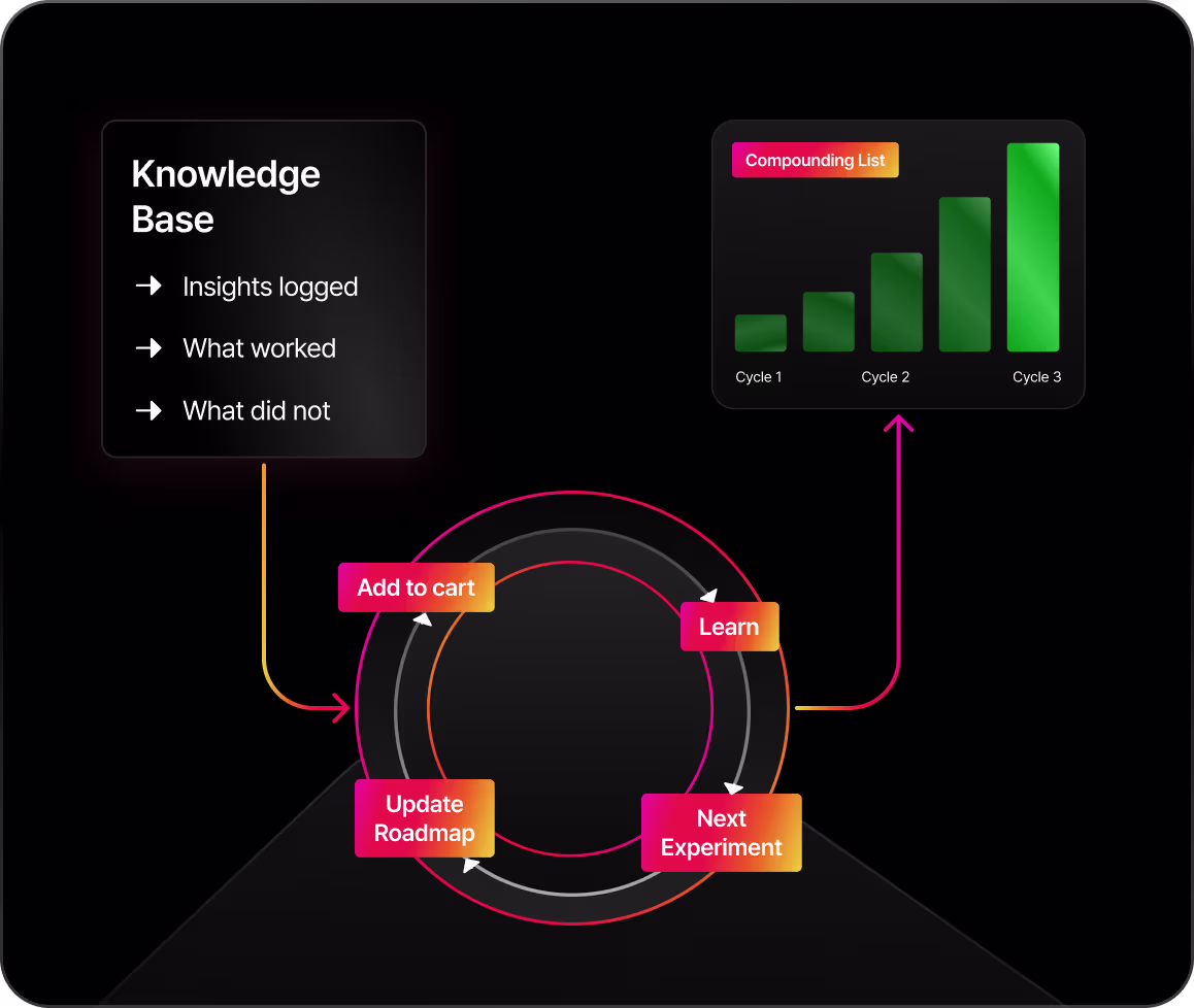 We recap each testing cycle, update your roadmap, and continually re-align experiments with your business KPIs, product changes, and campaigns.